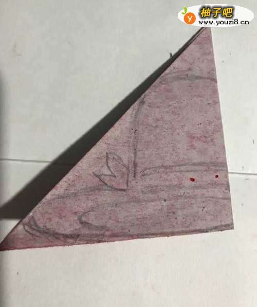 3第三步 左下角与右下角两角对折好之后 再把它调整一下在合适的位置 (九十度的角放在右下角)先画上礼帽顶的的轮廓