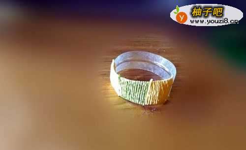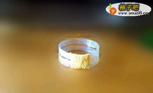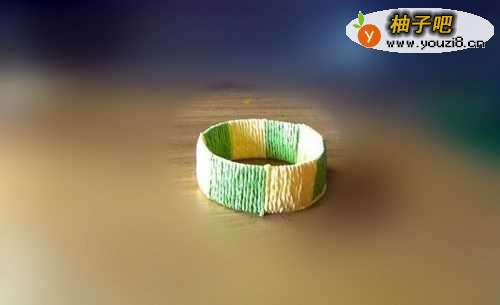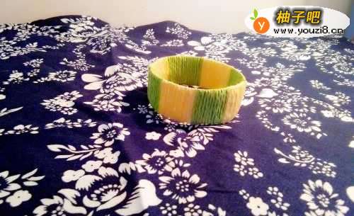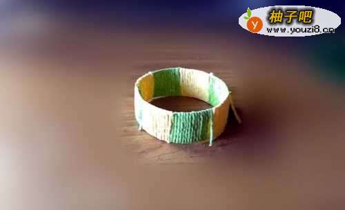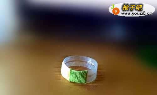 6就这样一截黄色,一截绿色的交错缠绕,直到把整个饮料瓶缠满。
