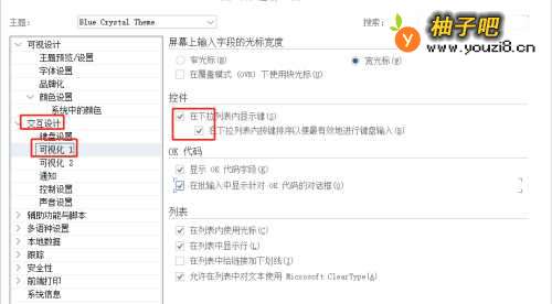 3选择【交互设计】→【可视化1】,勾选【在下拉列表内显示键】和【在下拉列表内按键排序以便最具效地进行键盘输入】;