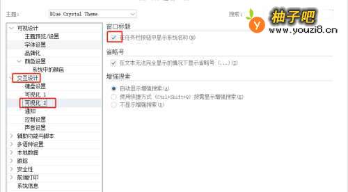 4选择【交互设计】→【可视化2】,勾选【在任务栏按钮中显示系统名称】;