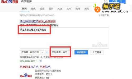 4此时我们在网页的第一项找到百度翻译,输入“闻王昌龄左迁龙标遥有此寄”,如图