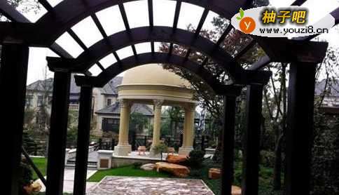 窝顶做花园廊架,那窝顶需要很大的空间如果很小,那么作用就不大,不过也有美观赏的作用,下面种些植物,上面能是放上钢化玻璃或者中些绿化,如下这种小面积的廊架也是美美的;