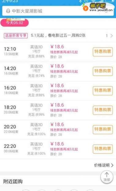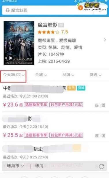 4挑选一家相对便宜且离你家近的电影院(要注意左上角的日期选择)