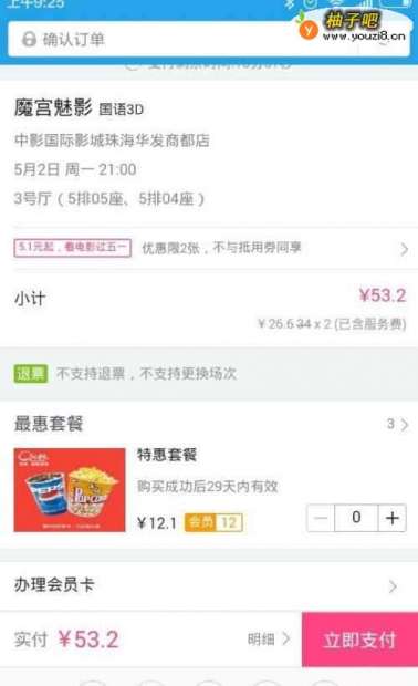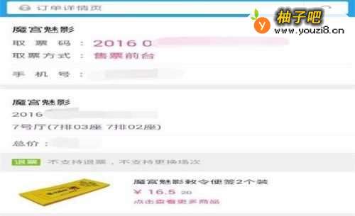 8恭喜你,买下了电影票,用你的手机将电影“取票码”截屏下来