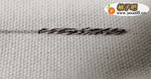 6一个锁链绣绣好后,下面的就都是按照上述的针法依次绣出几个锁链绣,见下图展示。