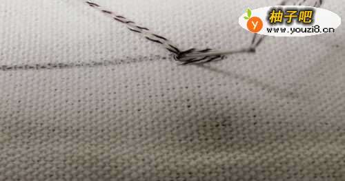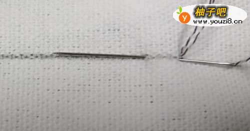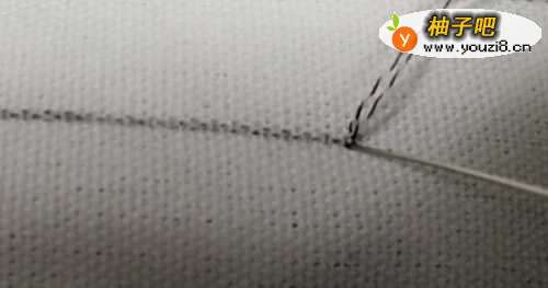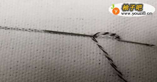 2针从直线的末端穿出来,拉线收紧,见下图展示。