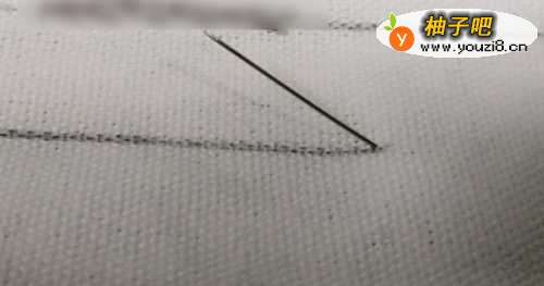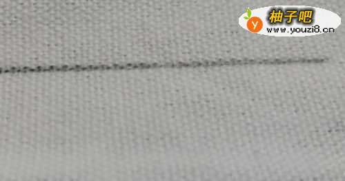 先用铅笔在布料上划一条直线,针线穿好,线尾打结,备用。