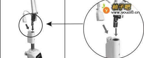 将底座接线接好,然后支臂插入底座,用于连接底座及支架。