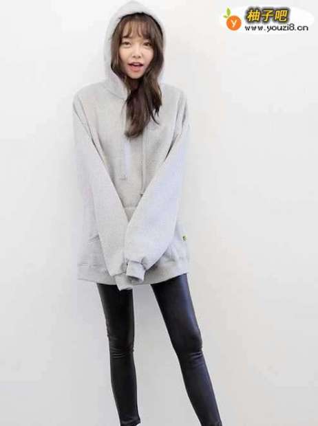 搭配一:灰色卫衣+黑色皮裤黑色皮裤在之前的经验中介绍过很多次了,时尚大方又应该,搭配灰色卫衣是非常时尚个性又帅气的。