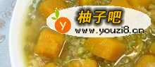 将绿豆洗净后下冷水锅,用大火烧沸后用小火煮,当绿豆皮刚被煮裂时,下南瓜块,大火烧沸后改中火煮至软熟。放少许白糖即可。