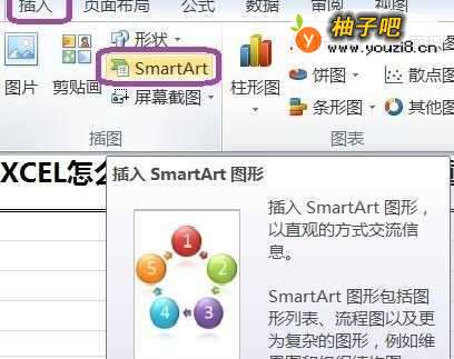 2选择B6单元格→插入→SmartArt,如下图所示。
