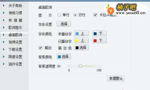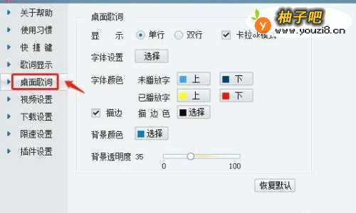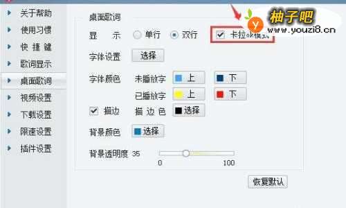 5下一步选择【桌面歌词】-【显示】,找到并选中【卡拉ok模式】;