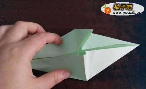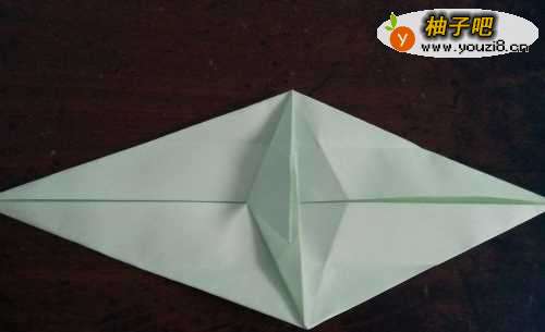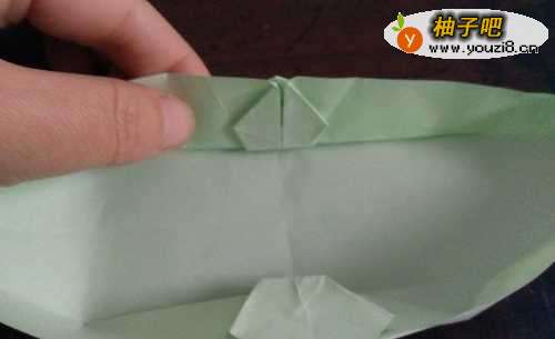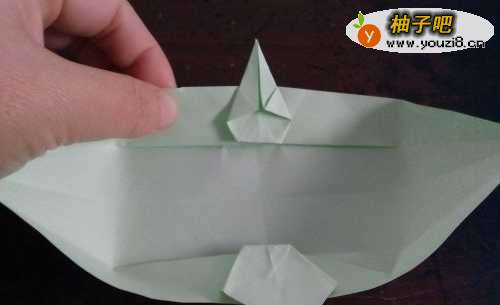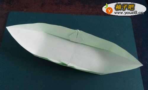 6我们把尖角折到后边,另一侧同样实施。一叶独木舟就折好了。