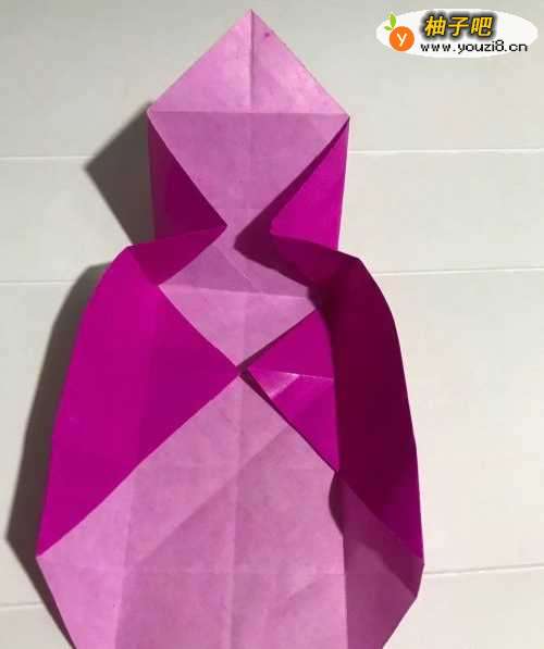 6第六步 折好一头之后 再把它上下掉个头 按同样的方式向里握折 尖角折进盒子里面的底部