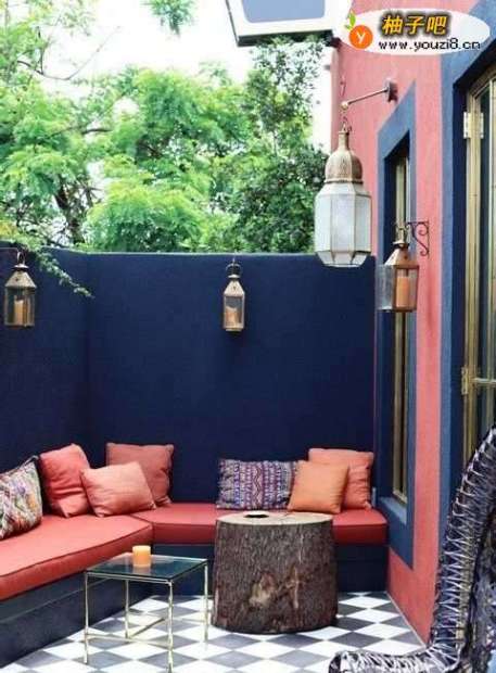 阳台上绿意盎然的景观赏可以让人们感受到与室内截然不同的感官享受,盆栽、藤蔓、鹅卵石等都是阳台生活的必备品。