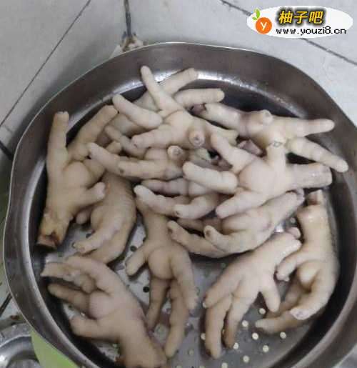 3将除过水的鸡爪,用水冲洗干净后,沥干备用。