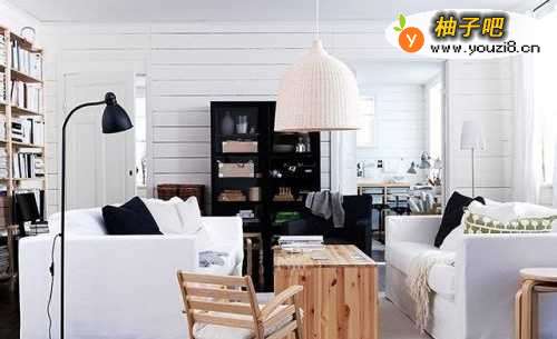 4宜家经典的黑白色系家居搭配计划。为缓解沉闷和单调,搭配中加入了原木色的相框,恰到好处的点缀,丝毫没有破坏整体黑白视觉反差效果。