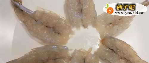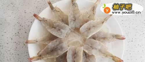 33. 取一只虾,沿背部剖开,然后用刀竖着在剖面上划几刀,注意千万不要把虾肉切断,做这一步,重要是为了防止虾在蒸的时候变形。所有的虾依次处理好,备用。