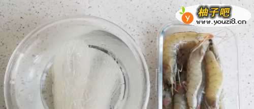 1. 所有材料准备好,大虾洗干净,粉丝用清水泡软。