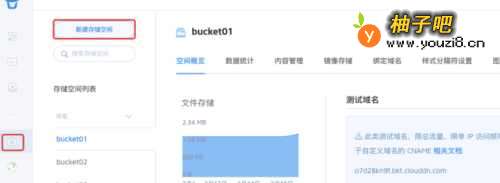 4方式2: 选择 对象存储 ,然后选择 新建存储空间 。