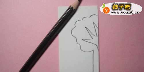 2接着,把正方形卡纸对折一半,并用铅笔在白纸上,画出好看的大树图形,根据对称图形,这里画出半个图形,如下图所示。