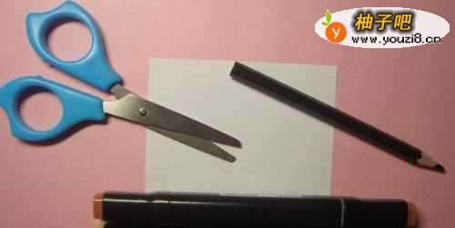 准备好,制作好看的大树儿童剪纸手工的材料和工具,有白纸、正方形卡纸、马克笔、铅笔,剪刀,如下图所示。