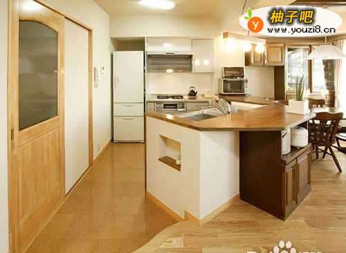 3厨房则是特别订做的规格。计算过冰箱等的位置后,统览全局再做的一个吧台。虽然有点麻烦,但既然装修就想要做到最好吧。