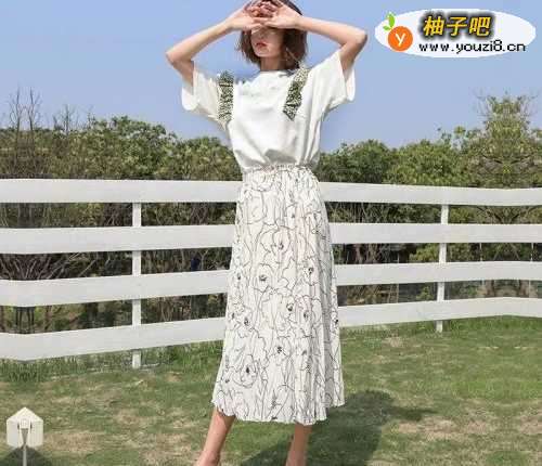 搭配一:浅蓝色T恤浅蓝色T恤是很好搭配衣服的,穿出来也很显清新感,搭配各种颜色的碎花半身裙都很优雅、大方。
