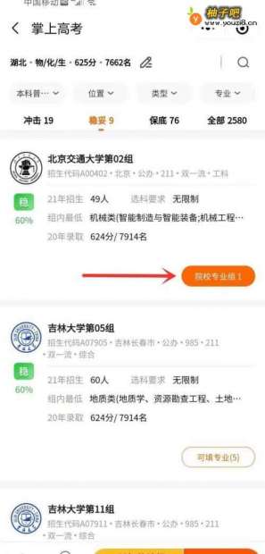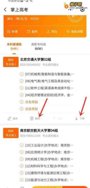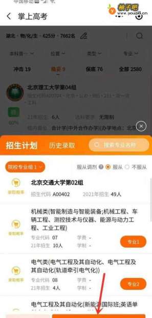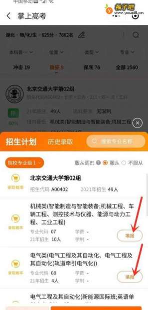注意:①、平行志愿的六个专业有先后的,在专业平行志愿投档录取中,按考生的名次先后投档,遵循志愿进行录取。②、专业能不选满。