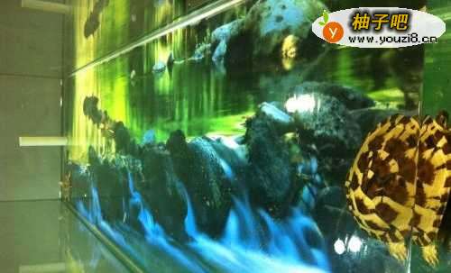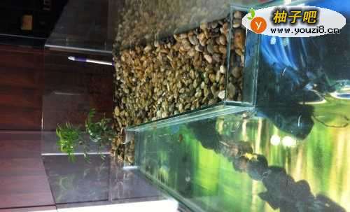 因为是打造成水陆两栖池,这里配置了玻璃做水陆两地隔离。