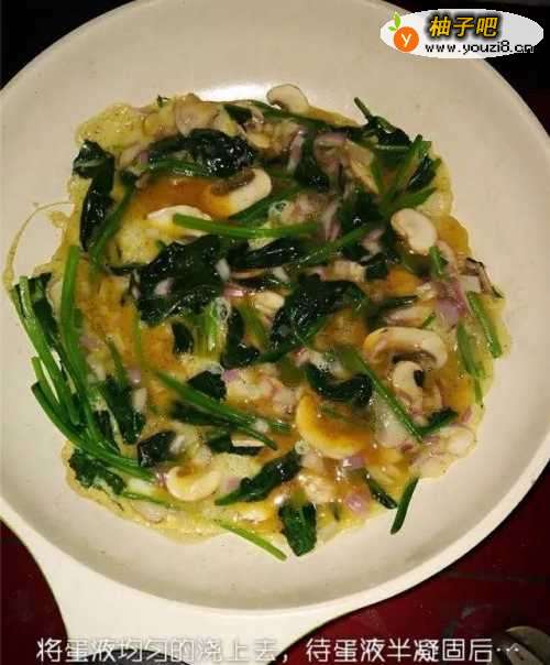 4将蛋液均匀的浇上去,待蛋液半凝固