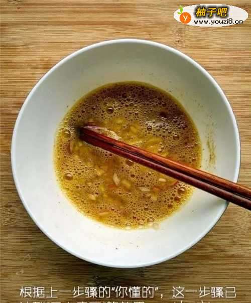 2把鸡蛋洋葱碎,少许盐和胡椒粉倒到同一个碗里,搅拌打出蛋沫