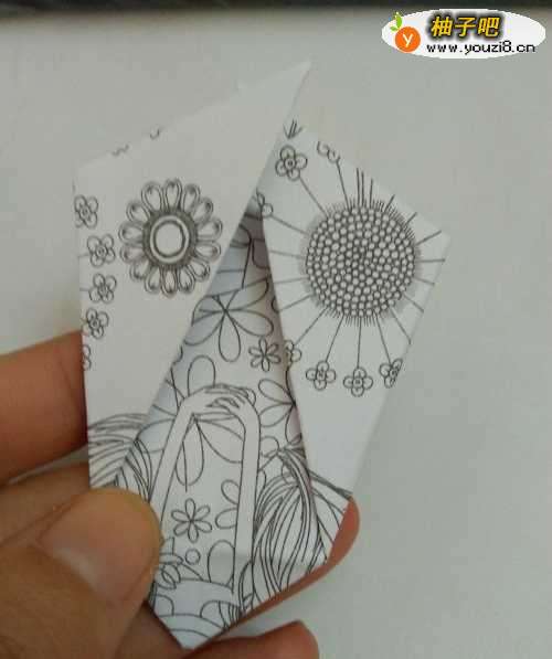 5全部折好后,我们把两侧的角斜着向内折,角度自己随意。如下图的样子。