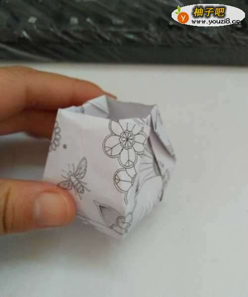 6折好后,我们把四个小角全部折进里边就折好了。