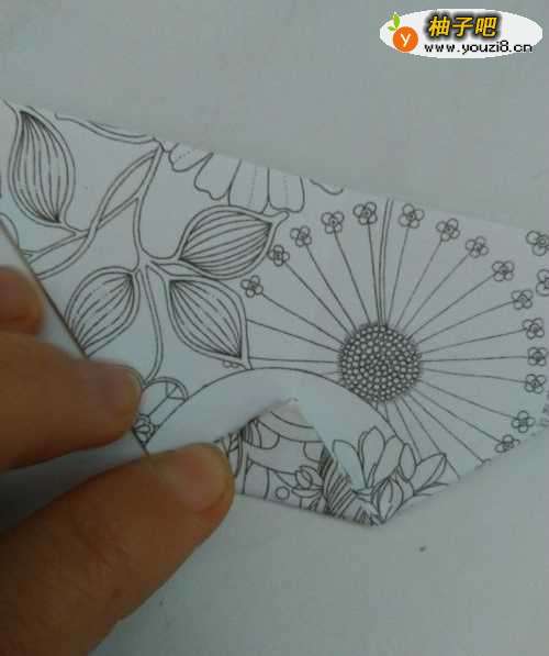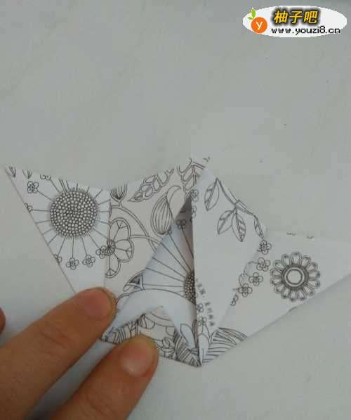 4然后把彩纸翻到另一面,我们把这一面按照上边的步骤同样实施。