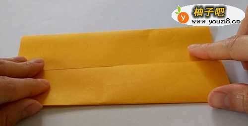 5对折一次,展开,然后两边向中间对折。