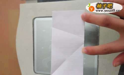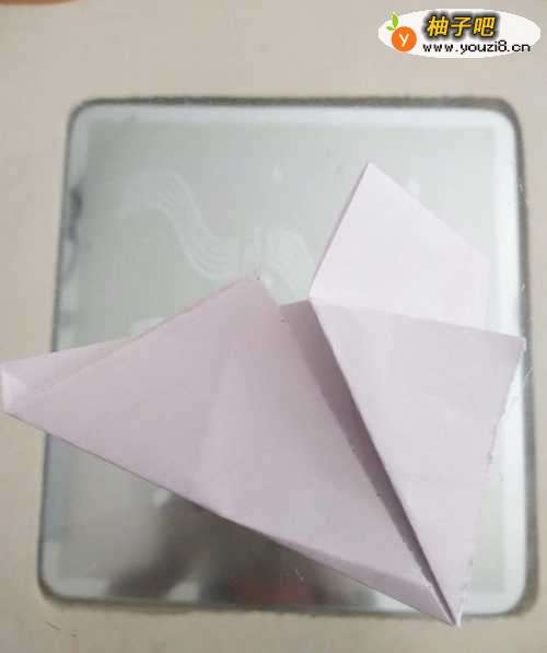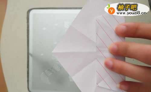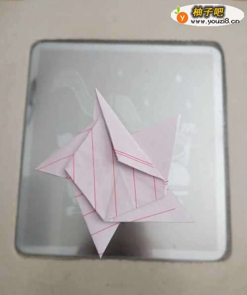 3把米字型的那边,沿着折好的这边重新折好,然后向后对折。如图: