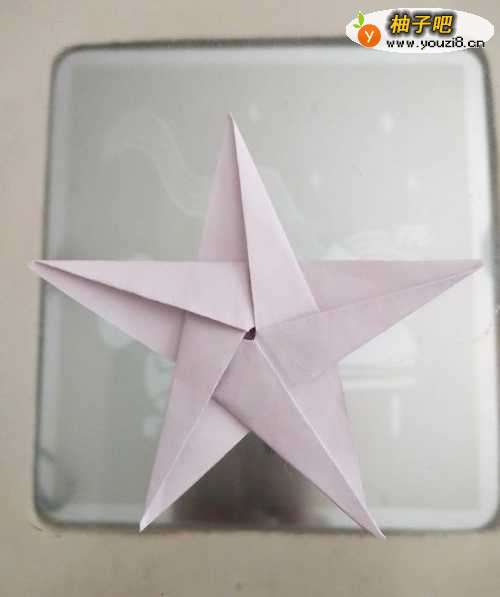 7把每个角按照中间轴折好五角星的一边,全部折好后用手压好。一个有棱有角的五角星就做好啦。