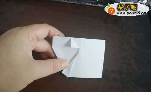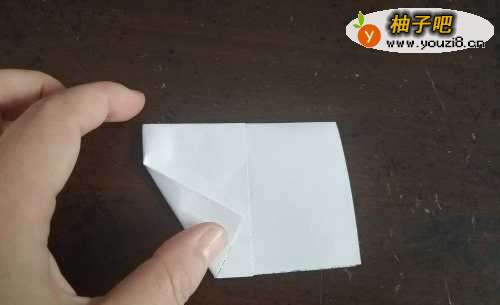 4我们把刚才折的的角折到纸的里边去,如图所示。