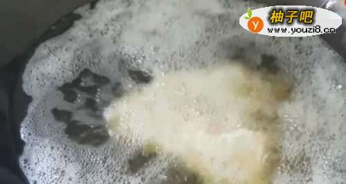 22.锅开火,倒油,放入鱼,煎至两侧金黄色,盛出。放鱼时的油要温而不热,避免炸焦。