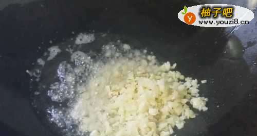 33.锅倒油,放姜、蒜和葱中火炒香,加入豆瓣酱、豆豉翻炒,炒出红油。