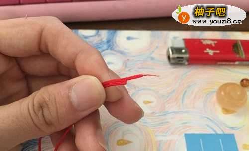 4第三步,穿顶珠,选择你喜欢的顶珠,用打火机把细线合二为一然后穿过去~