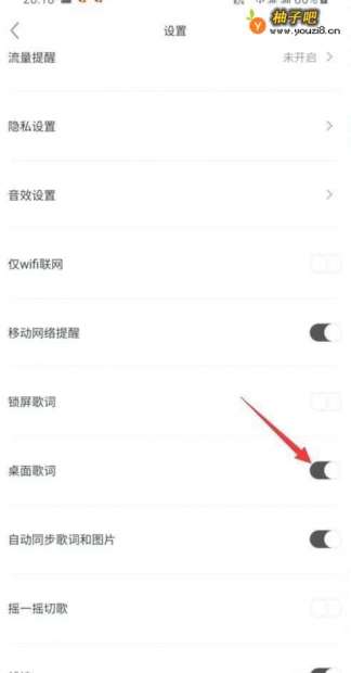 4在配置中下拉页面至【桌面歌词】,点击后方按钮即可关闭桌面歌词显示。