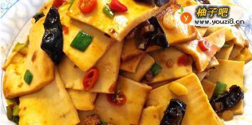 就是家常炒的仿干锅千叶豆腐。因为没有干锅,所以也就省略掉了打底用的洋葱丝。