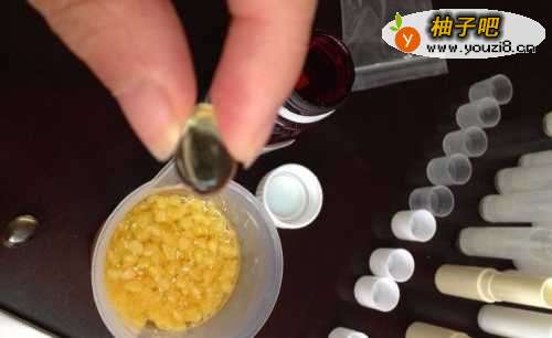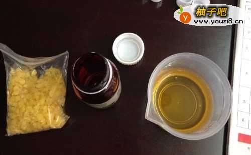 先用酒精给唇膏管,量杯消毒,等待挥发干,备用