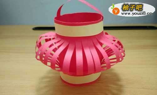 22撕掉双面胶的白色部分后,把它粘贴在灯笼的上面和下面,最后效果图如下。这样就成功地制作灯笼了。