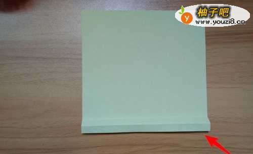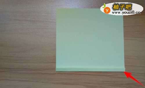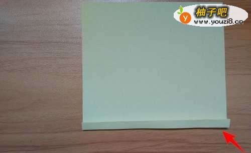 16拿出黄色彩纸,往如图箭头所指的线往上折。
