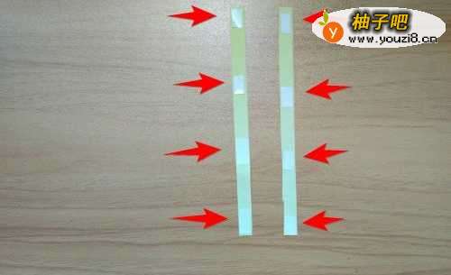 14把撕出的红线条两端都贴上双面胶。
