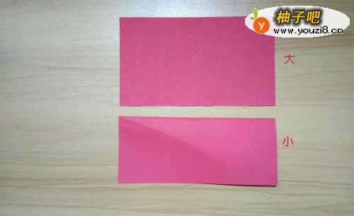 3用剪刀把对折线剪断,成为一大一小两部分。