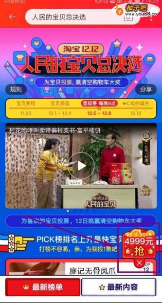 3进入到人民的宝贝总决选页面后,在页面右下方有一个4999元的浮动窗口,点击该浮动窗口。